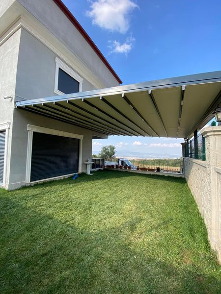 Açılır kapanır alüminyum lamellerle tasarlanmış bir gölgeleme sistemidir.